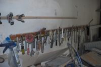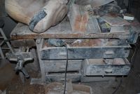 It is dusty and appears disorganized, just the way it was when he was alive. He spent many happy, peaceful hours here. You can see some of the projects he was still working on as well as some finished pieces. There is nothing so poignant as the picture of his eyeglasses left on the workbench where he last used them or the pair of tasseled shoes that seem to be almost new, discarded in a tool bucket – they were his favorite kind of shoes.